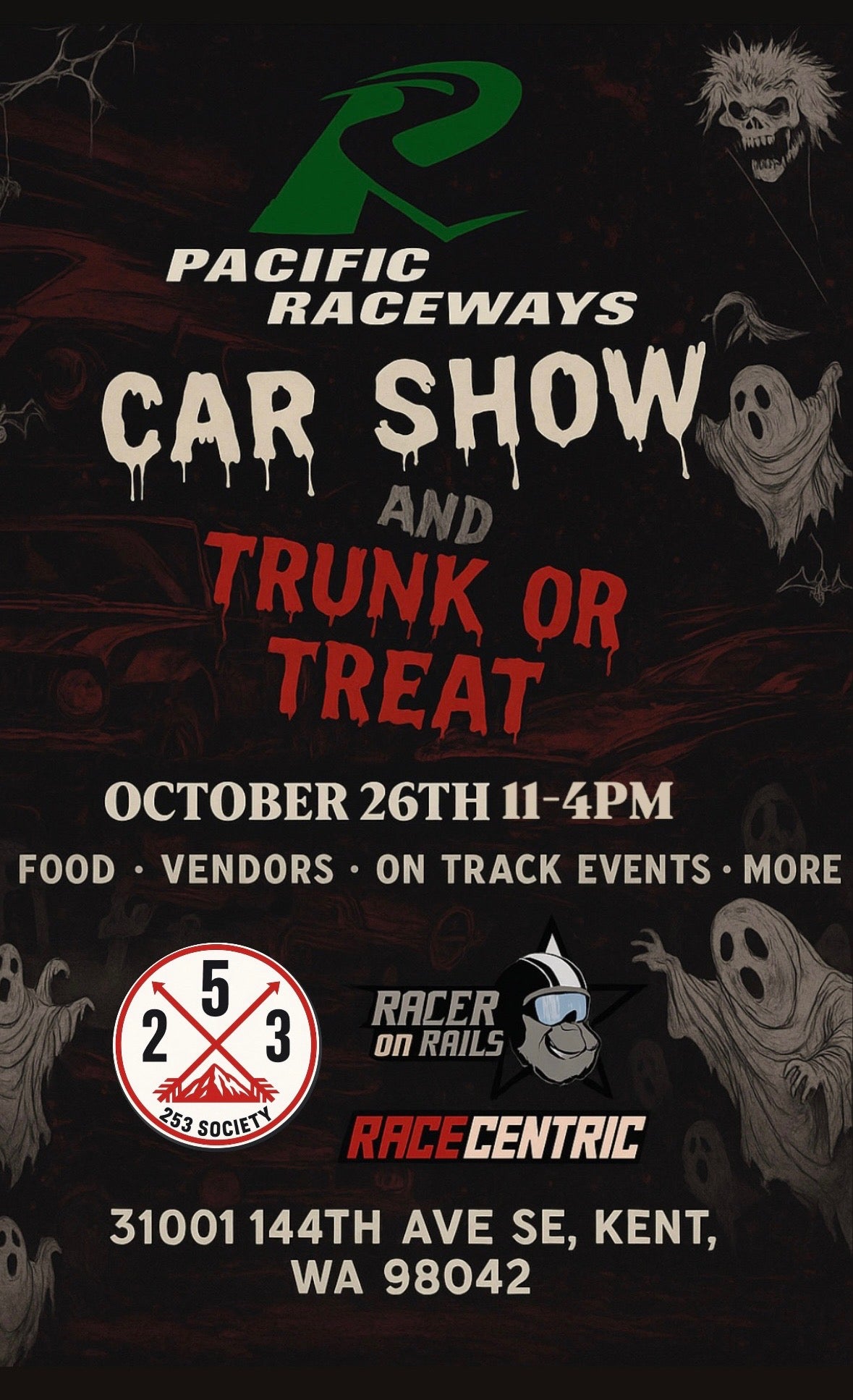 The annual Trunk or Treat by Pacific Raceways hosted by Racecentric in partnership with 253 Society and Racer on Rails!